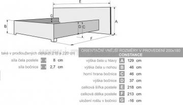Constance od prvního momentu upoutá svou nadstandardní výškou. Constance představuje kombinaci dřeva a čalounění dovedenou k dokonalosti. Čelo vyrobené z masivu je překryté čtvercovými kazetami, které jsou při výrobě samostatně vloženy do plochy. V případě potřeby je pak možná jejich jednoduchá výměna, aniž by se muselo příliš zasahovat do čela. Právě na čelo pak navazuje dřevěný rám postele, který po jeho stranách elegantně lemuje hladké čalounění. Jeho barva je pak čistě ve vaší režii, nabízíme například krémové nebo vínové. Díky svým plným barvám působí na oči jako magnet.