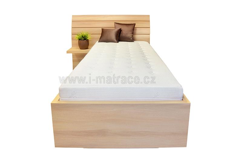 Dodáváno bez roštu, matrace a úložného prostoru - pouze rám postele s delším čelem a poličkou.