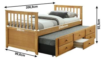 Součástí postele s přistýlkou je úložný prostor, kam pohodlně uložíte lůžkoviny, sezóní oblečení nebo i hračky. Přistýlka se vysouvá pomocí koleček.