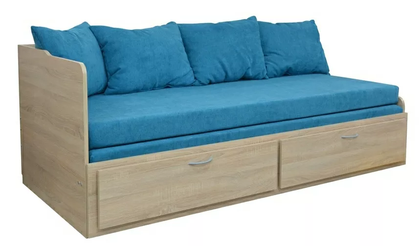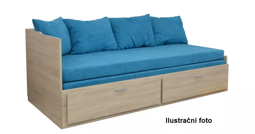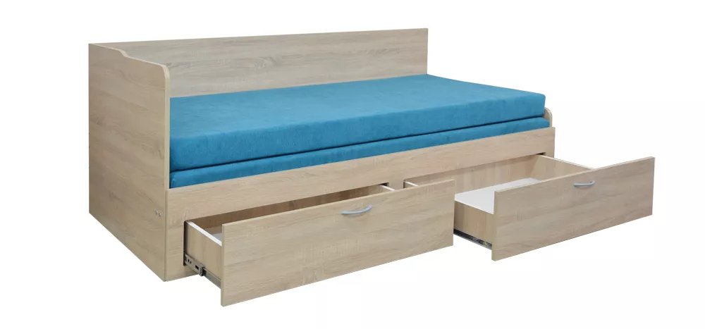Prostorná rozkládací postel Marko z lamina s úložným prostorem a roštem.