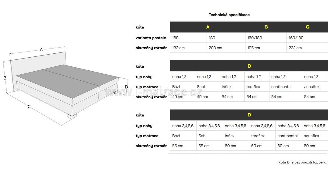 Bez matrace, denní deky a polštářů. Rošt výklopný z boku. Typ a barvu nožiček prosím uveďte do poznámky. Nožičky 1 a 2 mají výšku 6 cm, ostatní 12 cm.