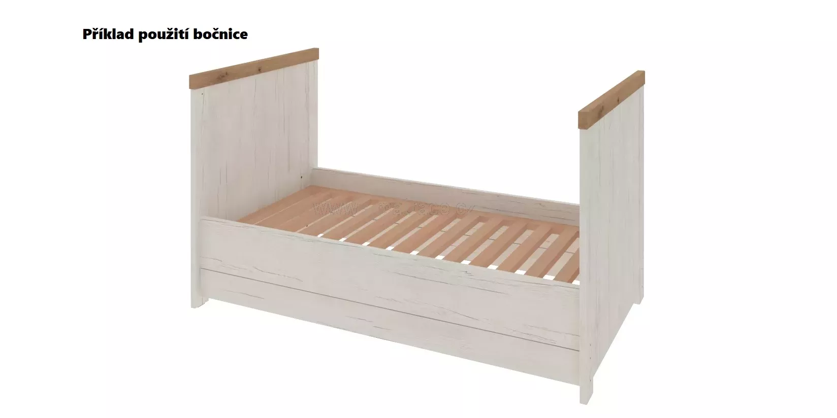 V pozdějším dětském věku lze postýlku také přetvořit na juniorské provedení. Možnost dokoupení bočnice.