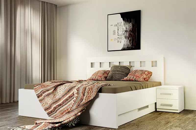 Postel je dostupná ve dvou variantách - s úložným prostorem nebo bez něj. Verze bez úložného prostoru stojí na elegantních stříbrných nohách, které dodávají posteli moderní a vzdušný vzhled.