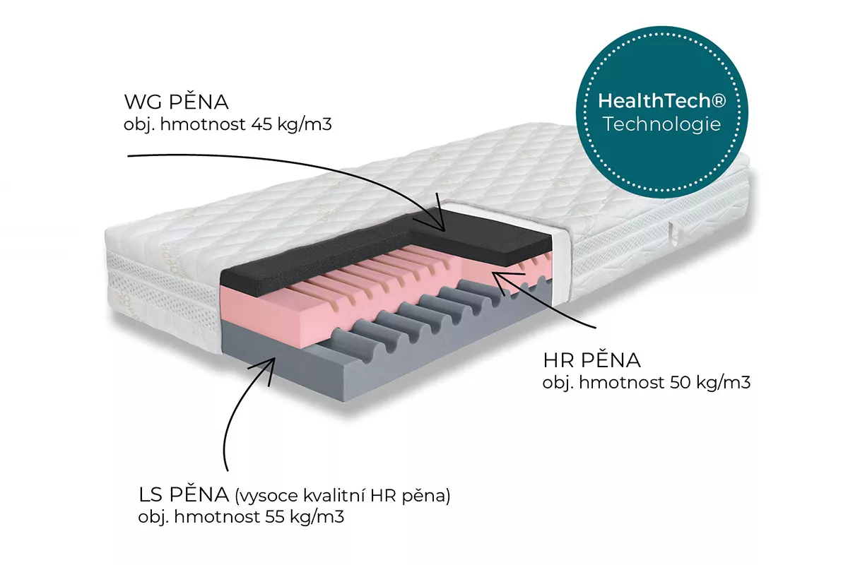- HR + LS pěna - pružnost, stabilita a dokonalé přizpůsobení tělu.