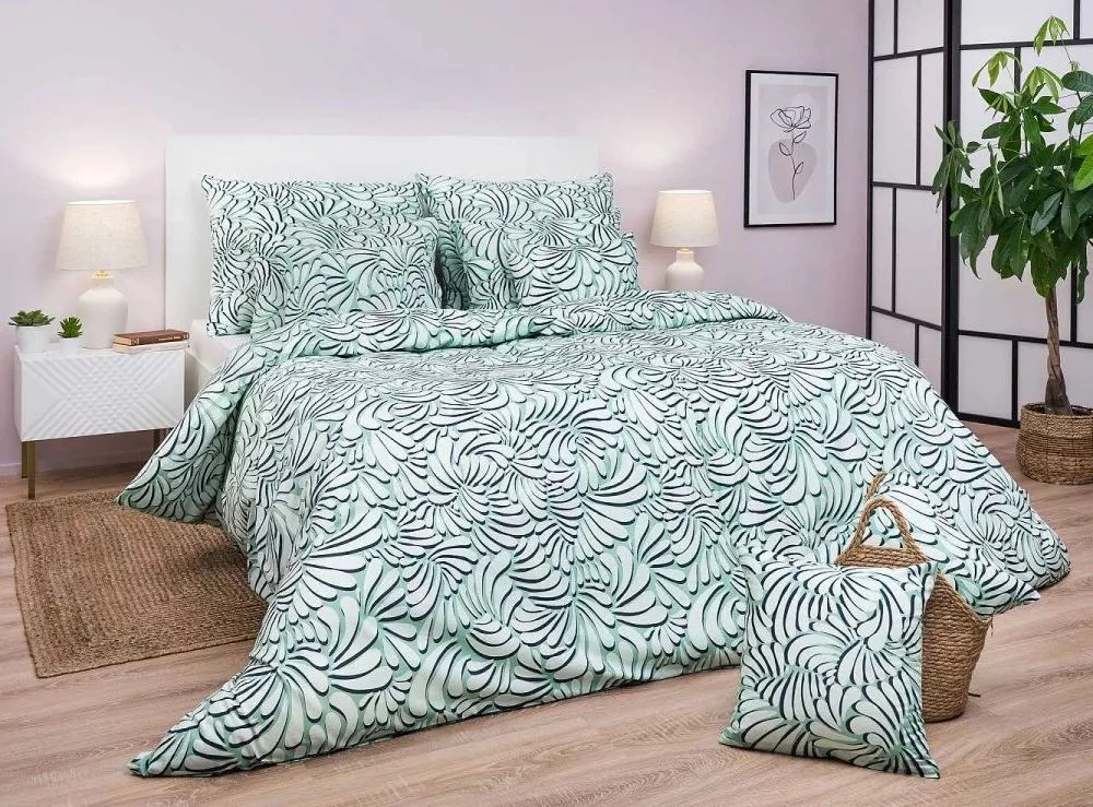 Ložní prádlo Iluze 2 mentol přináší do ložnice svěží atmosféru díky modernímu geometrickému vzoru v příjemném mentolovém odstínu. Tato uklidňující barva působí harmonicky a snadno se kombinuje s prostěradly v bílé, tmavě šedé či banánové barvě. Povlečení je vyrobeno v České republice firmou DADKA VRACOV, která je známá kvalitou a precizním zpracováním.