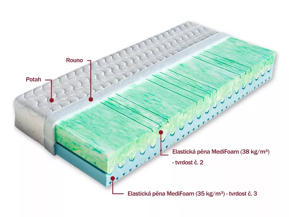 Matrace je opatřena snímatelným a pratelným potahem. Zip je po celém obvodu.