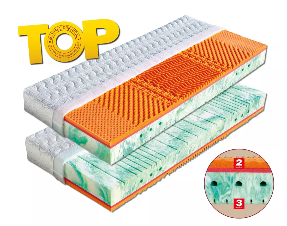 Matrace je složena ze tří kvalitních pěn, které nabízí vašemu tělo ideální oporu ve svém pevném základu a příjemné uvolnění ve svých vrchních vrstvách.