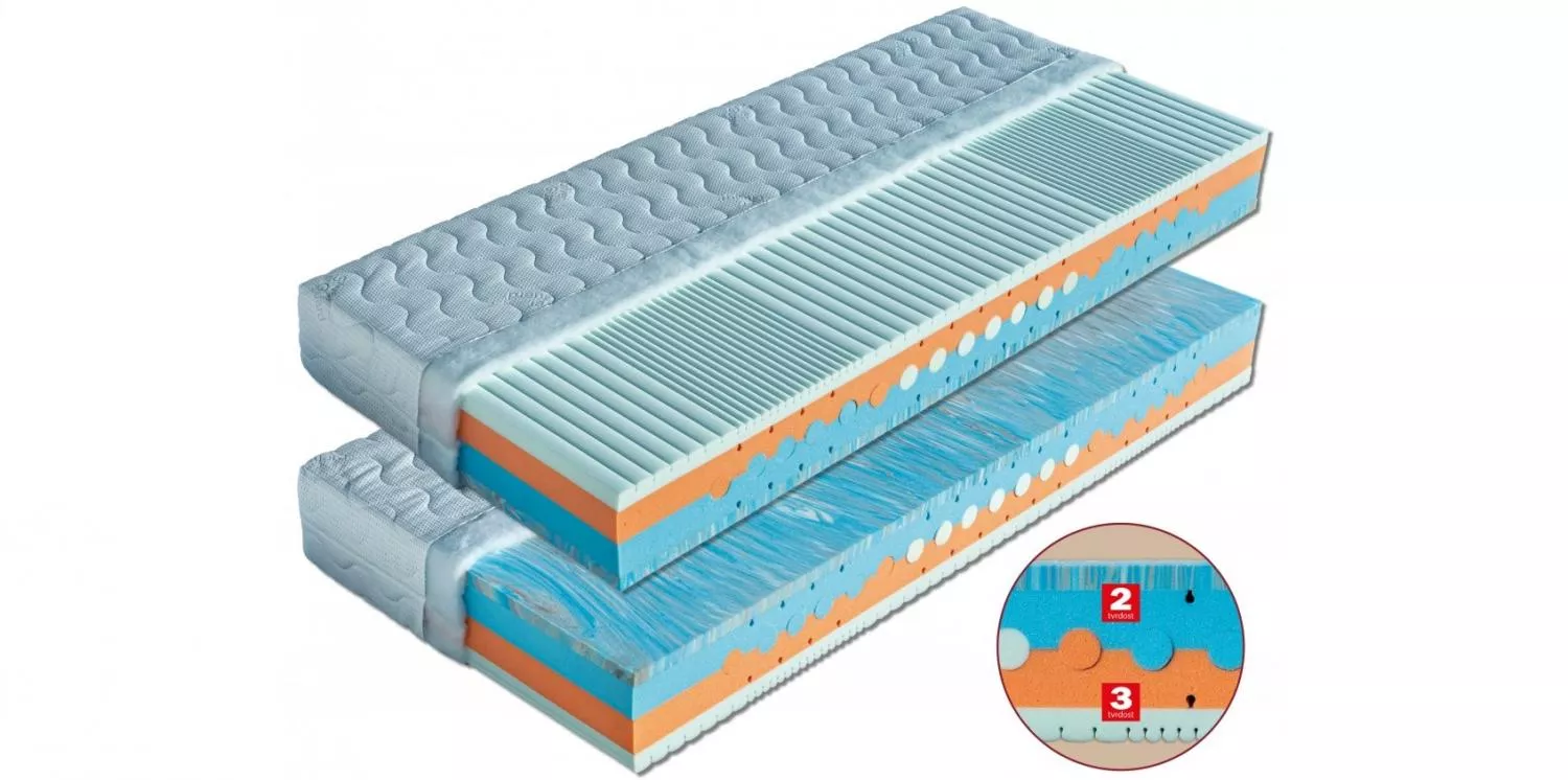 Kvalitní oboustranná matrace ze studené pěny Beáta je tvořena perforovaným jádrem ze studené pěny (40 a 45 kg/m³) dvou tvrdostí s vlož ...
