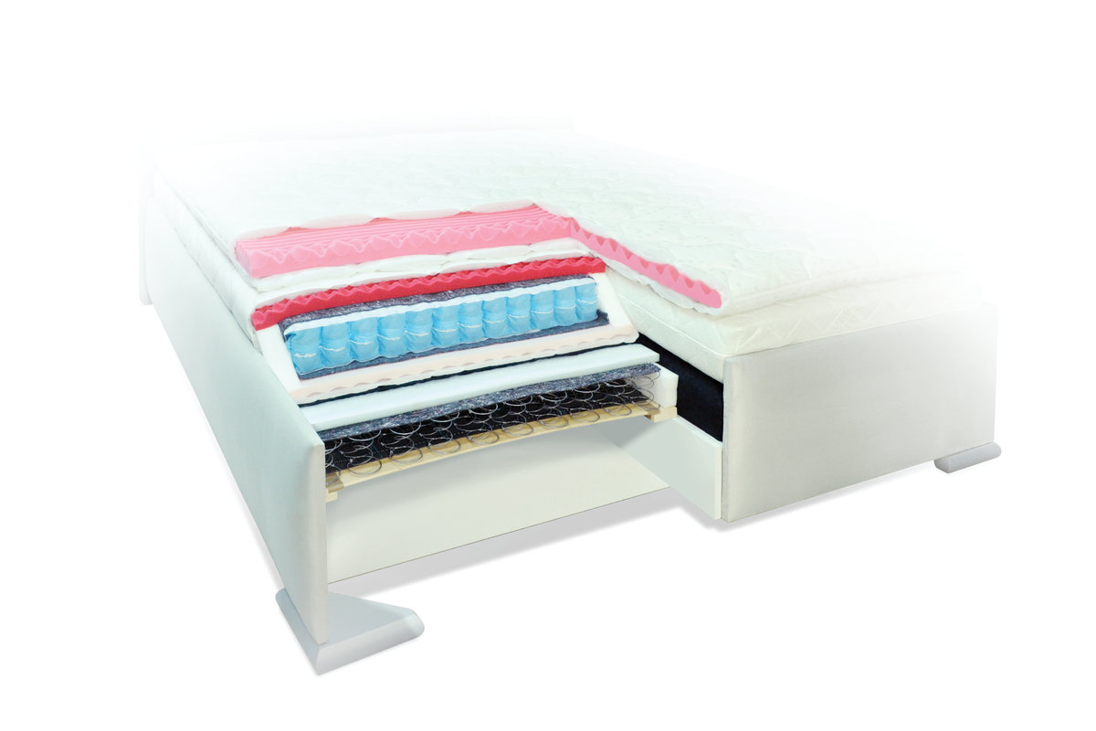 Pokud zvolíte provedení postele bez úložného prostoru, bude základní bonelová matrace uložena na pevné desce.