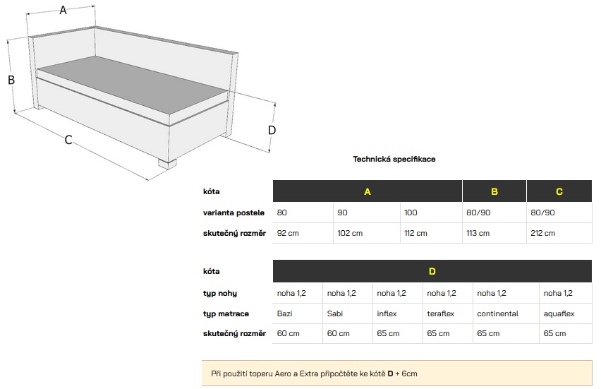 Možnost výroby ve variantě King size - 200x100 cm - pro fantastické pohodlí s úložným prostorem.