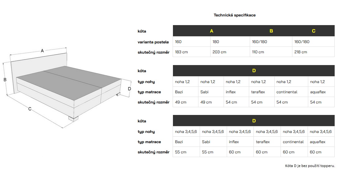 Nosnost roštu 130 kg. Nosnost matrace 110/130 kg dle použité matrace.