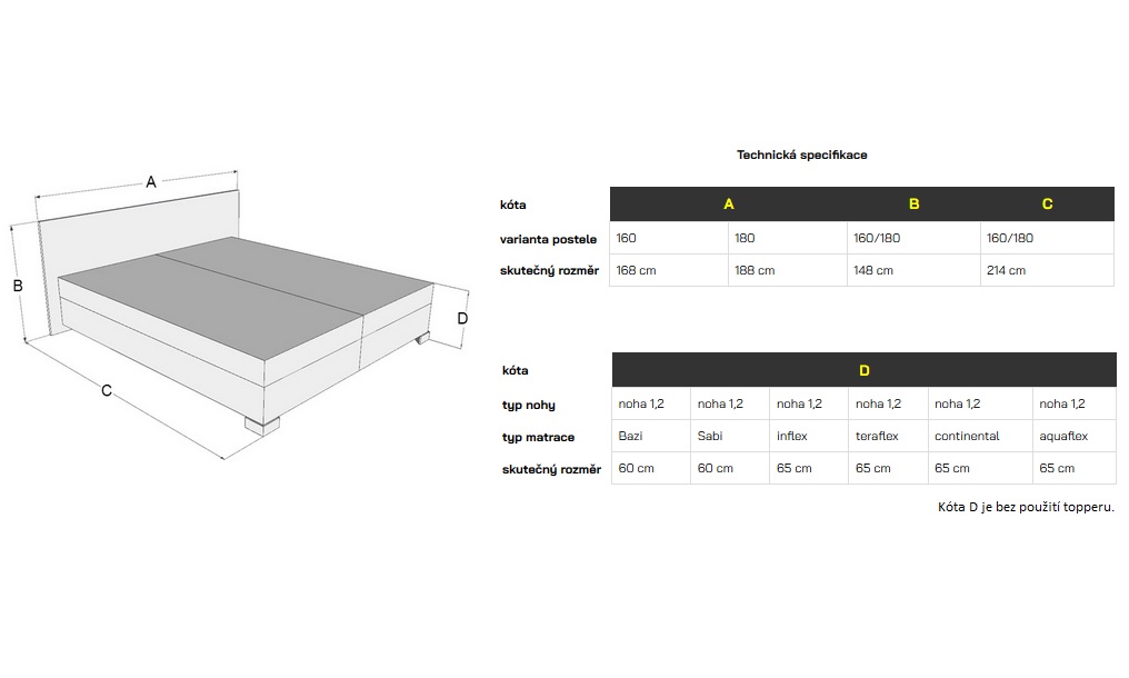 - Výška ložné plochy cca 59-71 cm dle použité matrace/topperu/úložného prostoru - detailněji v obrázku