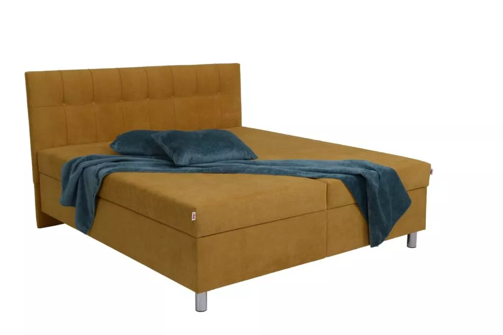 Čelo postele je ozvláštněno výrazným prošitím, což podtrhuje eleganci lůžka. Stabilitu postele zajišťují chromové nohy s výškou 11cm. Výška ložné plochy bez topperu je luxusních 58cm.