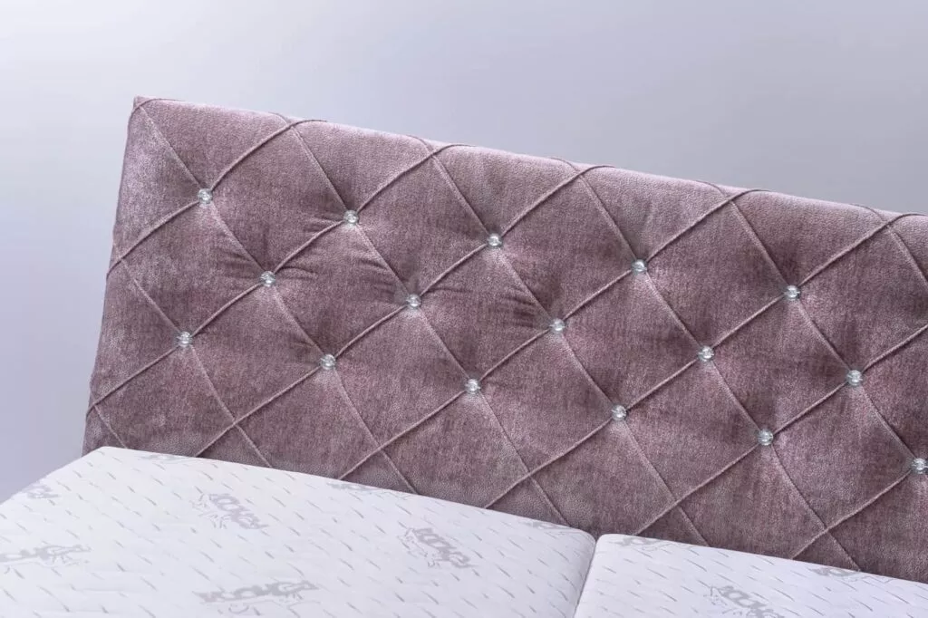 Čelo postele je jedinečné svým výrazným prošíváním,které je doplněno luxusními krystalovými knoflíčky.