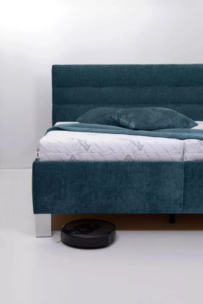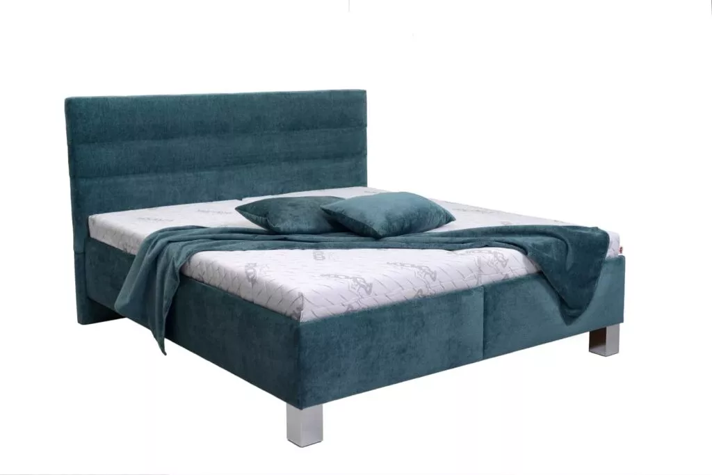 Čelo postele je ozvláštněno vodorovným prošitím, což podtrhuje eleganci lůžka.