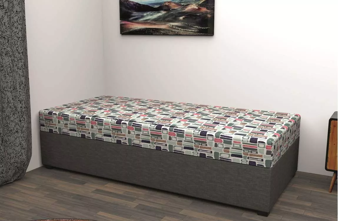 Na úvodním obrázku je postel v kombinaci látek Paris 5 a Walker 9 (vzor).