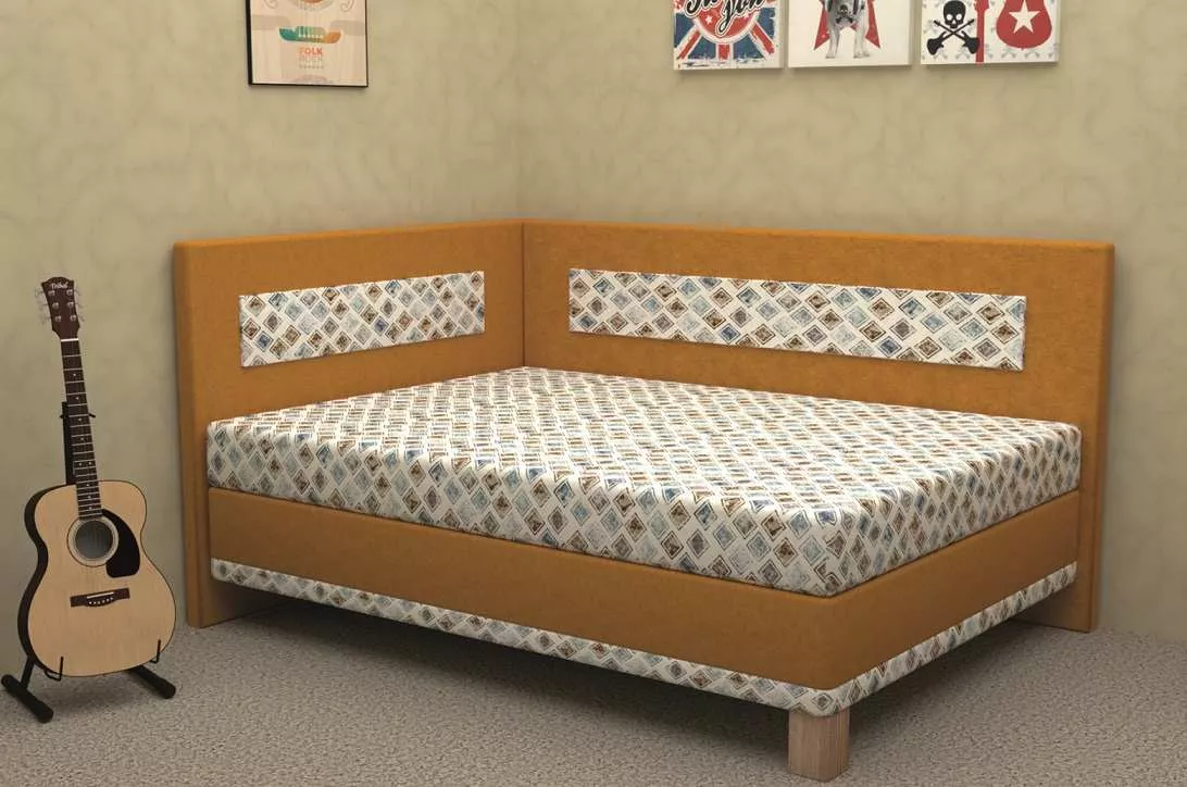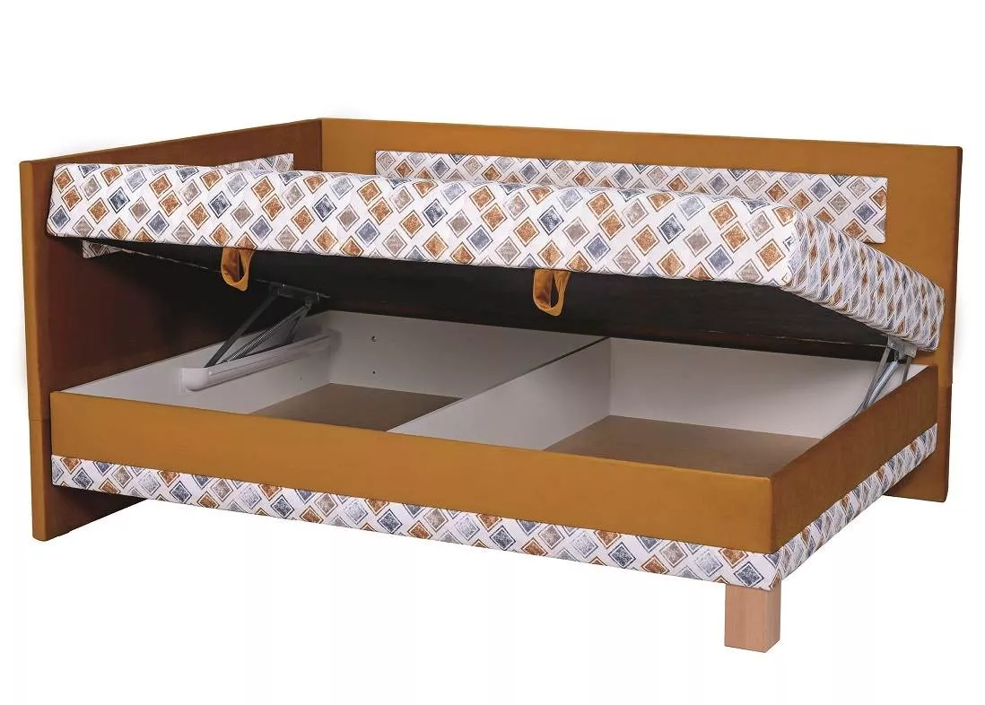 Součástí postele je pevný smrkový rošt a pružinová matrace Kombiflex. Úložný prostor se otvírá z boku. Potah matrace je prošitý. Celá konstrukce postele stojí na nožkách o výšce 15 cm.