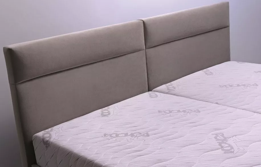 Na úvodním obrázku je postel v kombinaci látek Rivera 16 (sv. šedá) a Riviera 26 (hnědá) se základním korpusem.