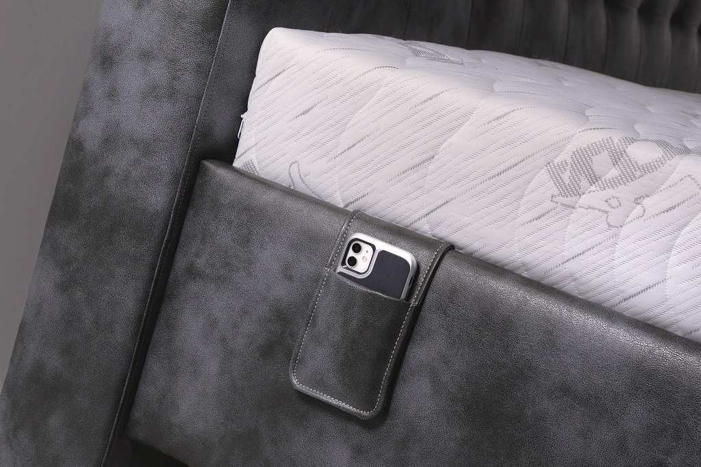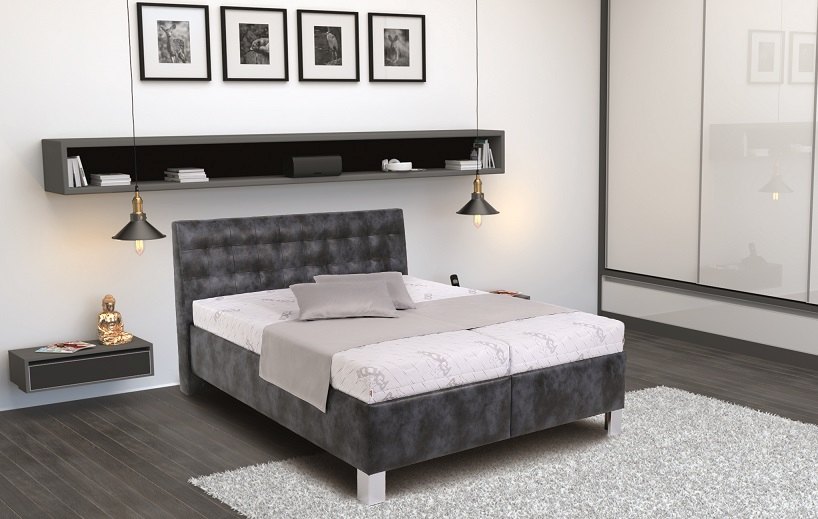 Na úvodním obrázku je postel v kombinaci látek Belmont 5 a Solar 70 (sv. šedá) se základním korpusem.