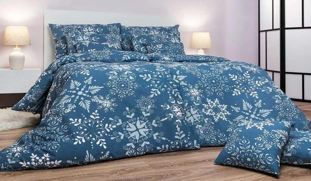 Krepové povlečení Slezsko modré. Bavlněné povlečení laděné do modré barvy.