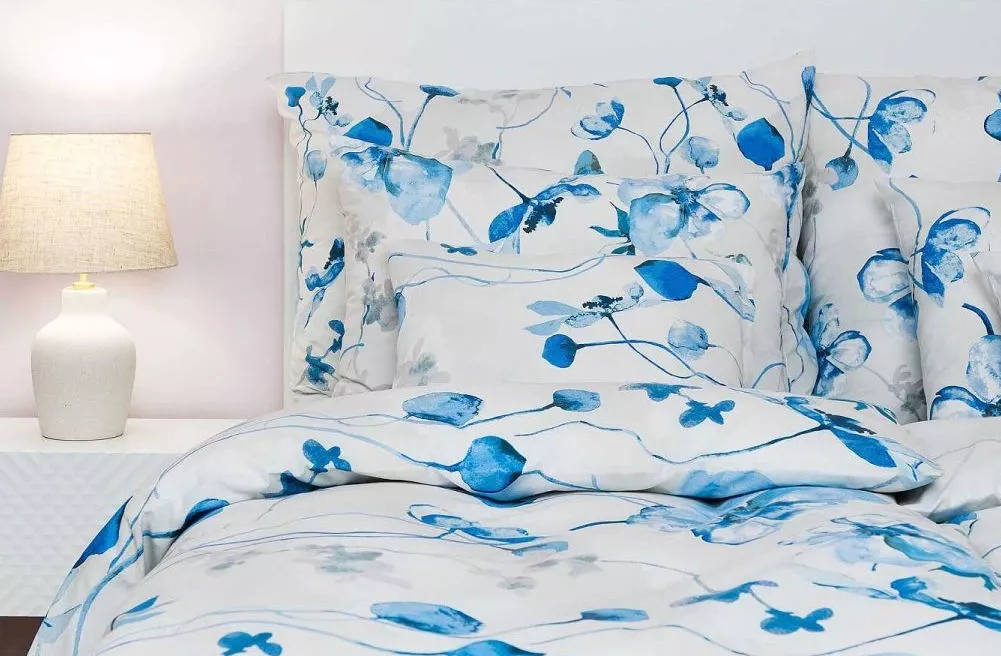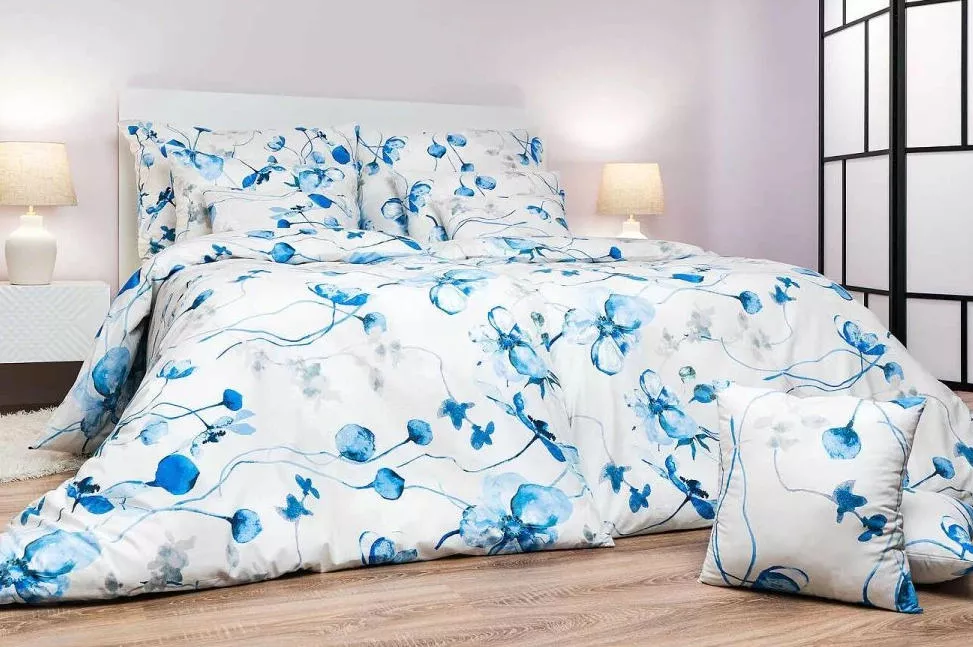 Romantické ložní prádlo Bloom elegance vyniká jemným květinovým vzorem v odstínech modré a bílé na banánovém podkladu. Do ložnice přináší něhu, lehkost a harmonickou atmosféru. Design je ideální pro milovníky elegantního, ale zároveň decentního stylu. Skvěle se kombinuje s prostěradly v barvě bílé, banánové nebo opálové.
