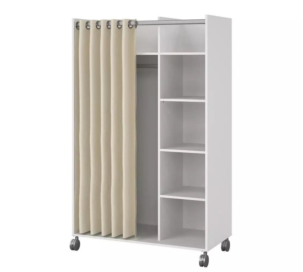 Skříň Harmony 119 je praktická mobilní skříň, která nabízí originální řešení úložného prostoru díky textilnímu závěsu místo klasických dveří. Vypadá lehce, v místnosti nepůsobí robustně a zároveň umožní rychlý přístup k uloženým věcem. Díky kolečkům ji navíc snadno přesunete podle potřeby ? ideální do dětského a studentského pokoje, předsíně, kanceláře i domácí pracovny.