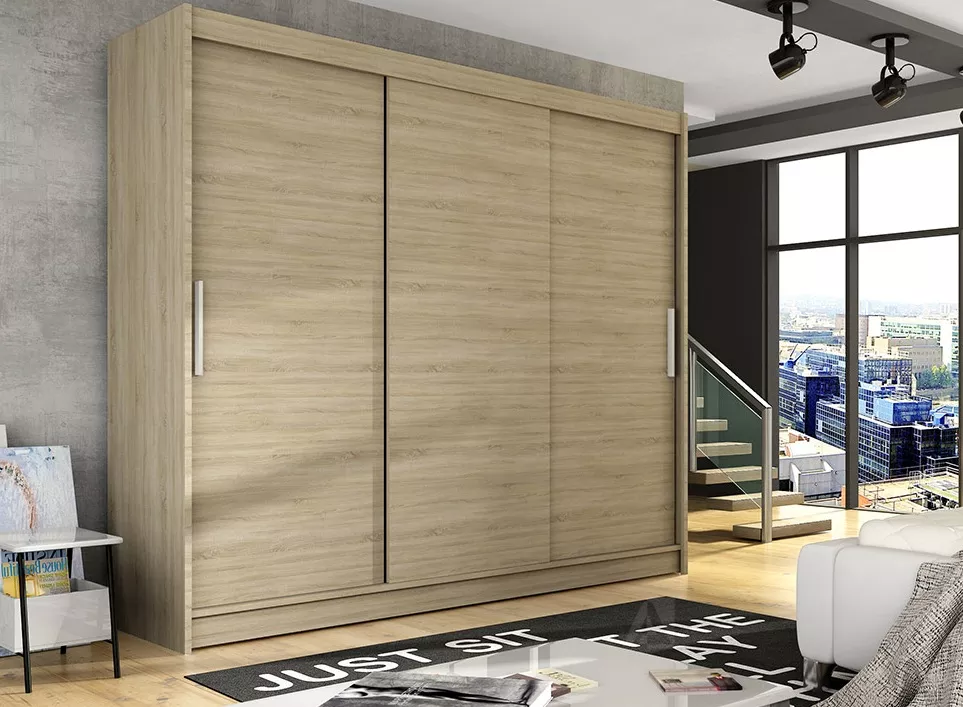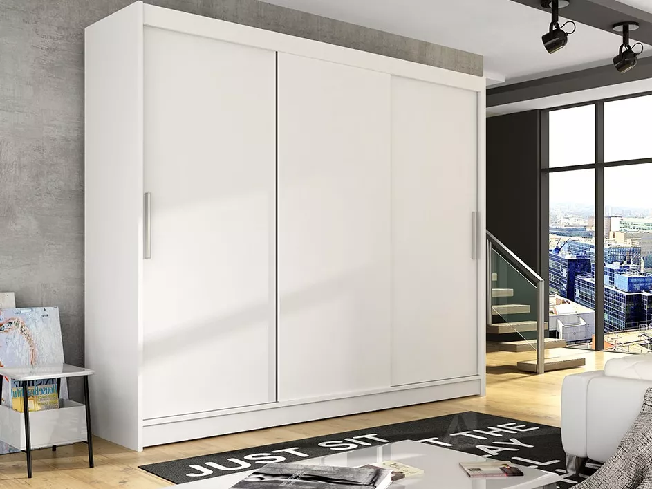 Skříň Astana II je prostorná šatní skříň s posuvnými dveřmi, která se hodí do ložnice i větší předsíně. Díky šířce 250 cm nabídne velkorysý úložný prostor na oblečení, textil i doplňky. Skříň je navržená pro každodenní používání a nabízíme ji ve čtyřech odstínech, takže si snadno vyberete variantu do svého interiéru.
