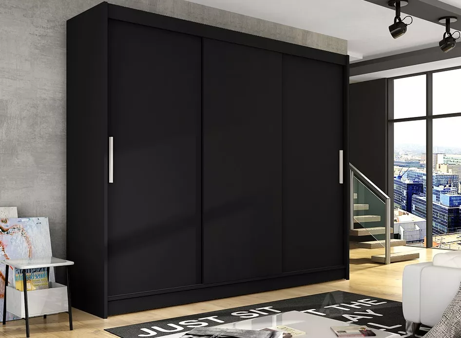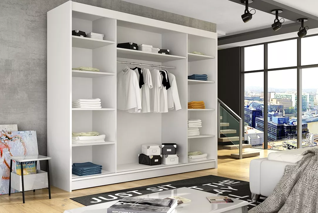 - šatní skříň s posuvnými dveřmi, úspora místa v místnosti